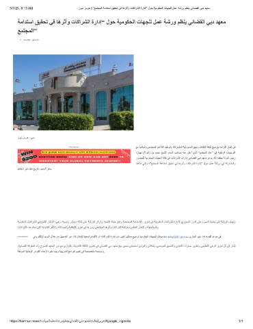 5/7/25, 8:13 AM زوﯾﻧ زﻣرھ | "ﻊﻣﺗﺟﻣﻟا ﺔﻣادﺗﺳا ﻖﯾﻘﺣﺗ ﻲﻓ ﺎھرﺛأو تﺎﻛارﺷﻟا ةرادإ" لوﺣ ﺔﯾﻣوﻛﺣﻟا تﺎﮭﺟﻠﻟ لﻣﻋ ﺔﺷرو مظﻧﯾ ﻲﺋﺎﺿﻘﻟا ﻲﺑد دﮭﻌﻣ