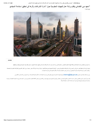 5/7/25, 8:13 AM ﻊﻣﺗﺟﻣﻟا ﺔﻣادﺗﺳا ﻖﯾﻘﺣﺗ ﻲﻓ ﺎھرﺛأو تﺎﻛارﺷﻟا ةرادإ" لوﺣ ﺔﯾﻣوﻛﺣﻟا تﺎﮭﺟﻠﻟ لﻣﻋ ﺔﺷرو مظﻧﯾ ﻲﺋﺎﺿﻘﻟا ﻲﺑد دﮭﻌﻣ" - ESG Mena