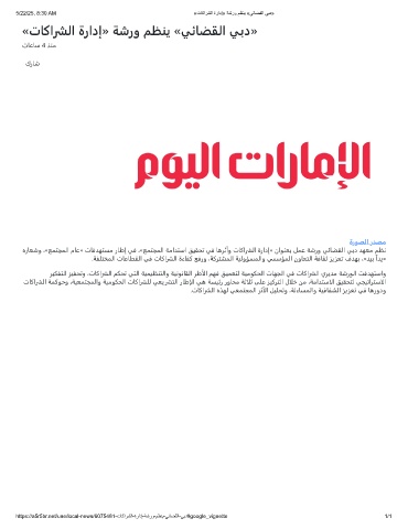 5/22/25, 8:30 AM «تﺎﻛارﺷﻟا ةرادإ» ﺔﺷرو مظﻧﯾ «ﻲﺋﺎﺿﻘﻟا ﻲﺑد»