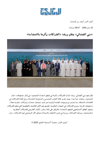 مﺎﻋ» تﺎﻓﺪﻬﺘﺴﻣ رﺎﻃإ ﻓ ،«ﻊﻤﺘﺠﻤﻟا ﺔﻣاﺪﺘﺳا ﻖﻴﻘﺤﺗ ﻓ ﺎﻫﺮﺛأو تﺎﻛاﺮﺸﻟا ةرادإ» ﺔﺷرو ،ﺋﺎﻀﻘﻟا ﺑد ﺪﻬﻌﻣ ﻢﱠﻈﻧ