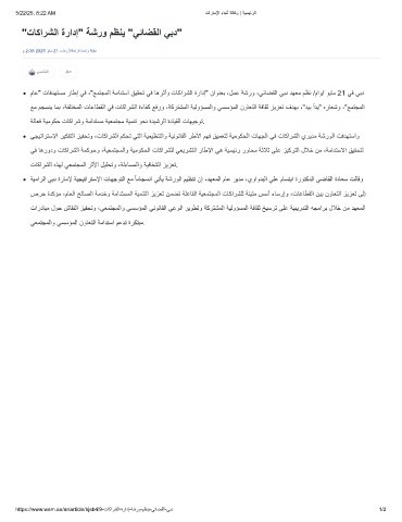"تﺎﻛارﺷﻟا ةرادإ" ﺔﺷرو مظﻧﯾ "ﻲﺋﺎﺿﻘﻟا ﻲﺑد"