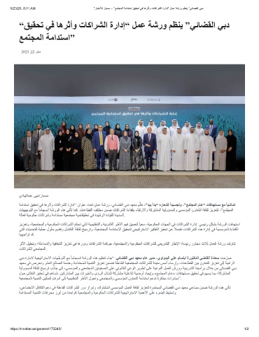 5/23/25, 8:11 AM “رﺎﺑﺧﻸﻟ رﺎﺑﺳﻣ – ”ﻊﻣﺗﺟﻣﻟا ﺔﻣادﺗﺳا ﻖﯾﻘﺣﺗ ﻲﻓ ﺎھرﺛأو تﺎﻛارﺷﻟا ةرادإ“ لﻣﻋ ﺔﺷرو مظﻧﯾ ”ﻲﺋﺎﺿﻘﻟا ﻲﺑد