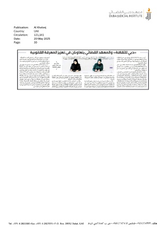 Publication: Al Khaleej Country: UAE Circulation: 121,141 Date: 20 May 2025 Page: 30