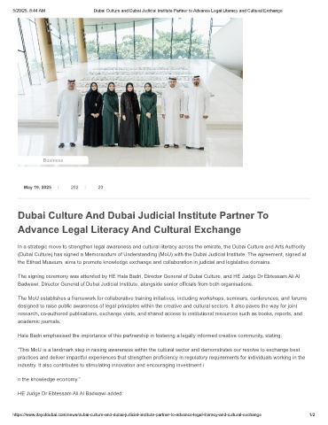 5/20/25, 8:44 AM Dubai Culture and Dubai Judicial Institute Partner to Advance Legal Literacy and Cultural Exchange