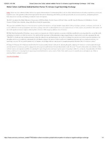 5/20/25, 8:45 AM Dubai Culture And Dubai Judicial Institute Partner To Advance Legal Knowledge Exchange - UAE Today