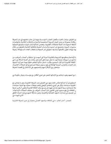 5/20/25, 8:33 AM ﺔﯾﻧوﻧﺎﻘﻟا ﺔﻓرﻌﻣﻟا زﯾزﻌﺗ ﻲﻓ نﺎﻧوﺎﻌﺗﯾ ﻲﺋﺎﺿﻘﻟا دﮭﻌﻣﻟاو «ﺔﻓﺎﻘﺛﻠﻟ ﻲﺑد» : مﻟﺎﻌﻟا رﺎﺑﺧأ