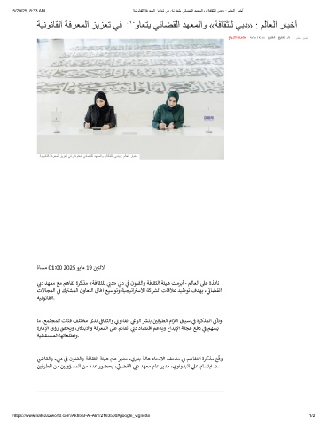 5/20/25, 8:33 AM ﺔﯾﻧوﻧﺎﻘﻟا ﺔﻓرﻌﻣﻟا زﯾزﻌﺗ ﻲﻓ نﺎﻧوﺎﻌﺗﯾ ﻲﺋﺎﺿﻘﻟا دﮭﻌﻣﻟاو «ﺔﻓﺎﻘﺛﻠﻟ ﻲﺑد» : مﻟﺎﻌﻟا رﺎﺑﺧأ