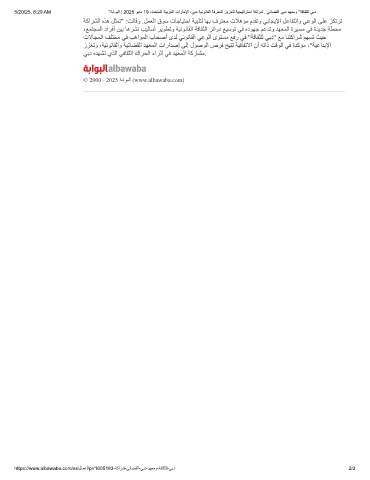 5/20/25, 8:29 AM "ﺔﺑاوﺑﻟا | 2025 وﯾﺎﻣ 19 ،ةدﺣﺗﻣﻟا ﺔﯾﺑرﻌﻟا تارﺎﻣﻹا ،ﻲﺑد ﺔﯾﻧوﻧﺎﻘﻟا ﺔﻓرﻌﻣﻟا زﯾزﻌﺗﻟ ﺔﯾﺟﯾﺗارﺗﺳا ﺔﻛارﺷ ..ﻲﺋﺎﺿﻘﻟا ﻲﺑد دﮭﻌﻣو "ﺔﻓﺎﻘﺛﻠﻟ ﻲﺑد