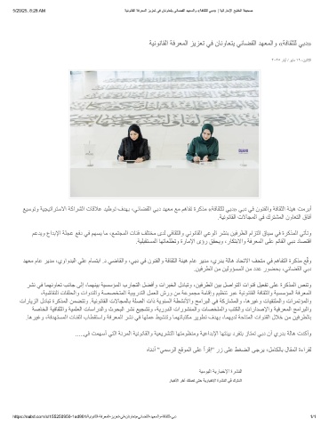 5/20/25, 8:28 AM ﺔﯾﻧوﻧﺎﻘﻟا ﺔﻓرﻌﻣﻟا زﯾزﻌﺗ ﻲﻓ نﺎﻧوﺎﻌﺗﯾ ﻲﺋﺎﺿﻘﻟا دﮭﻌﻣﻟاو «ﺔﻓﺎﻘﺛﻠﻟ ﻲﺑد» | ﺔﯾﺗارﺎﻣﻹا ﺞﯾﻠﺧﻟا ﺔﻔﯾﺣﺻ