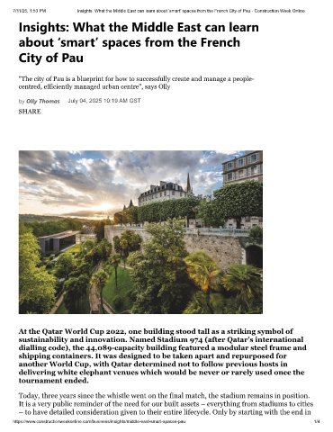 7/11/25, 1:53 PM Insights: What the Middle East can learn about ‘smart’ spaces from the French City of Pau - Construction Week Online