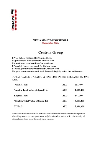 Page 3 - Centena Group PR Report - September 2025
