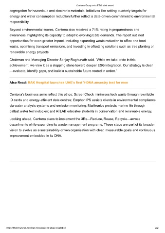 Looking ahead, Centena plans to implement the 3Rs—Reduce, Reuse, Recycle—across