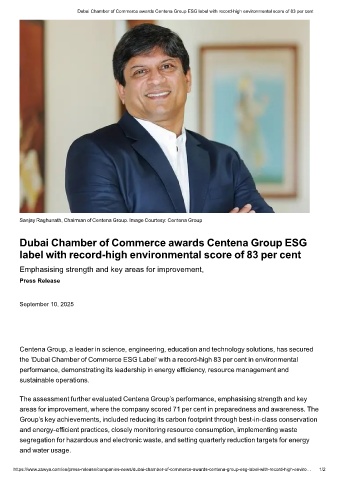 https://www.zawya.com/en/press-release/companies-news/dubai-chamber-of-commerce-awards-centena-group-esg-label-with-record-high-enviro… 1/2