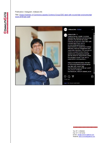 Title: Dubai Chamber of Commerce awards Centena Group ESG label with record-high environmental