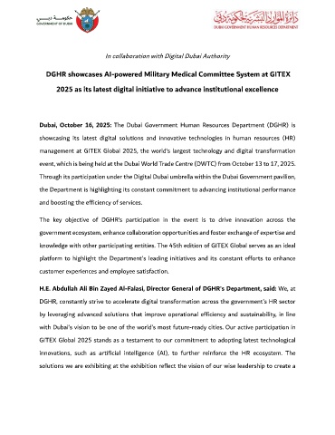 Dubai, October 16, 2025: The Dubai Government Human Resources Department (DGHR) is