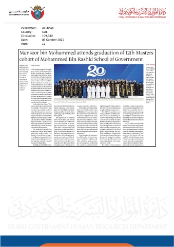 Publication: Al Etihad Country: UAE Circulation: 109,640 Date: 08 October 2025 Page: 11