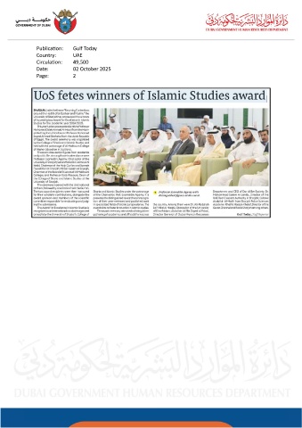 Publication: Gulf Today Country: UAE Circulation: 49,500 Date: 02 October 2025 Page: 2