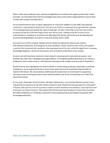 For her part, Sarah bint Yousif Al Amiri, Minister of Education, commended Sheikh Ammar’s visit,