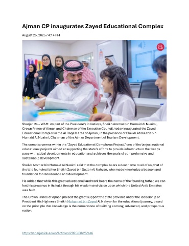 Ajman CP inaugurates Zayed Educational Complex