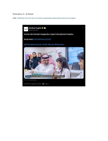 Publication: X – Al Etihad Link: Al Etihad: Ammar bin Humaid inaugurates Zayed Educational Complex