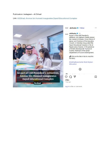Publication: Instagram – Al Etihad Link: Al Etihad: Ammar bin Humaid inaugurates Zayed Educational Complex