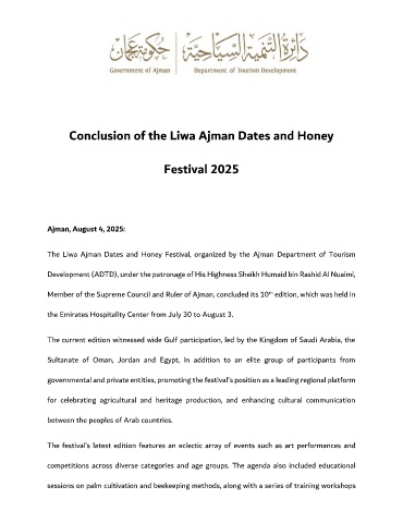 The Liwa Ajman Dates  and Honey  Festival,  organized by the  Ajman Department of  Tourism