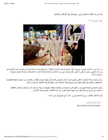 ﺪﯿﻤﺣ ﺦﯿﺸﻟا ﻮﻤﺴﻟا ﺐﺣﺎﺻ ﻦﻣ ﺔﻤﯾﺮﻛ ﺔﯾﺎﻋر ﺖﺤﺗ ﻢﻈﻨُﯾ يﺬﻟا ،"2025 ﻞﺴﻌﻟاو ﺐطﺮﻠﻟ نﺎﻤﺠﻋ اﻮﯿﻟ" نﺎﺟﺮﮭﻣ ،نﺎﻤﺠﻋ ءﺎﻀﻗ راد ﻦﻣ ﺪﻓو راز