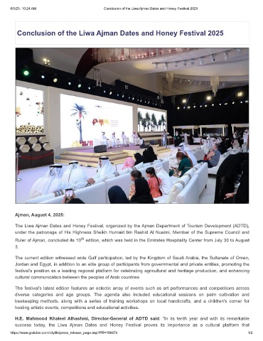 8/5/25, 10:24 AM Conclusion of the Liwa Ajman Dates and Honey Festival 2025
