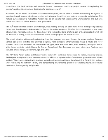 8/5/25, 10:24 AM Conclusion of the Liwa Ajman Dates and Honey Festival 2025