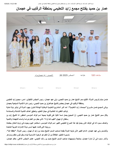 8/26/25, 10:23 AM نﺎﻣﺟﻋ ﻲﻓ بﯾﺎﻗرﻟا ﺔﻘطﻧﻣﺑ ﻲﻣﯾﻠﻌﺗﻟا دﯾاز ﻊﻣﺟﻣ ﺢﺗﺗﻔﯾ دﯾﻣﺣ نﺑ رﺎﻣﻋ | ﮫﯾﺗارﺎﻣﻹا رﺟﻔﻟا ةدﯾرﺟ | ﮫﯾﺗارﺎﻣﻹا رﺟﻔﻟا ةدﯾرﺟ