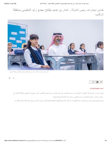 8/26/25, 10:23 AM رﺎﺑﺧﻸﻟ دﺎﺣﺗﻻا - بﯾﺎﻗرﻟا ﺔﻘطﻧﻣﺑ ﻲﻣﯾﻠﻌﺗﻟا دﯾاز ﻊﻣﺟﻣ ﺢﺗﺗﻔﯾ نﺎﻣﺟﻋ دﮭﻋ ﻲﻟو ..ﺔﻟودﻟا سﯾﺋر تاردﺎﺑﻣ نﻣﺿ