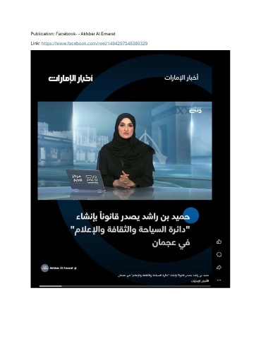 Publication: Facebook- - Akhbar Al Emarat Link: https://www.facebook.com/reel/1494297548380329