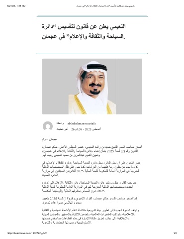 8/27/25, 1:38 PM نﺎﻣﺟﻋ ﻲﻓ "مﻼﻋﻹاو ﺔﻓﺎﻘﺛﻟاو ﺔﺣﺎﯾﺳﻟا ةرﺋاد" سﯾﺳﺄﺗﻟ نوﻧﺎﻗ نﻋ نﻠﻌﯾ ﻲﻣﯾﻌﻧﻟا.