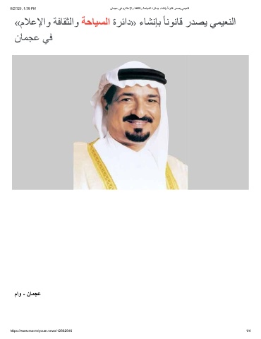 8/27/25, 1:38 PM نﺎﻣﺟﻋ ﻲﻓ «مﻼﻋﻹاو ﺔﻓﺎﻘﺛﻟاو ﺔﺣﺎﯾﺳﻟا ةرﺋاد» ءﺎﺷﻧﺈﺑ ً ﺎﻧوﻧﺎﻗ ردﺻﯾ ﻲﻣﯾﻌﻧﻟا ً «مﻼﻋﻹاو ﺔﻓﺎﻘﺜﻟاو ﺔﺣﺎﯿﺴﻟا ةﺮﺋاد» ءﺎﺸﻧﺈﺑ ﺎﻧﻮﻧﺎﻗ رﺪﺼﯾ ﻲﻤﯿﻌﻨﻟا نﺎﻤﺠﻋ ﻲﻓ ماو - نﺎﻣﺟﻋ https://www.masralyoum.news/12862846 1/4
