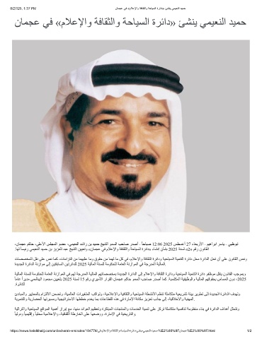 https://news.halalkhalij.com/united-arab-emirates/184774/ﻲﻓ-مﻼﻋﻹاو-ﺔﻓﺎﻘﺛﻟاو-ﺔﺣﺎﯾﺳﻟا-ةرﺋاد-ﺊﺷﻧﯾ-ﻲﻣﯾﻌﻧﻟا-دﯾﻣﺣ-%E2%80%8Fنﺎﻣﺟﻋ%E2%80%8F.html 1/2