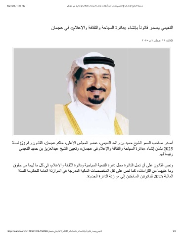 8/27/25, 1:35 PM نﺎﻣﺟﻋ ﻲﻓ «مﻼﻋﻹاو ﺔﻓﺎﻘﺛﻟاو ﺔﺣﺎﯾﺳﻟا ةرﺋاد» ءﺎﺷﻧﺈﺑ ً ﺎﻧوﻧﺎﻗ ردﺻﯾ ﻲﻣﯾﻌﻧﻟا | ﺔﯾﺗارﺎﻣﻹا ﺞﯾﻠﺧﻟا ﺔﻔﯾﺣﺻ