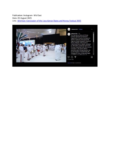 Publication: Instagram- Mid East Date: 05 August 2025 Link: Mid East: Conclusion of the Liwa Ajman Dates and Honey Festival 2025