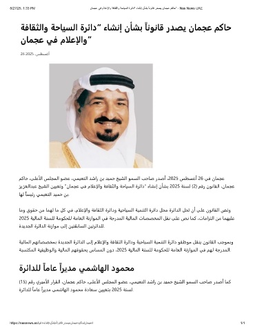 8/27/25, 1:33 PM نﺎﻣﺟﻋ ﻲﻓ مﻼﻋﻹاو ﺔﻓﺎﻘﺛﻟاو ﺔﺣﺎﯾﺳﻟا ةرﺋاد" ءﺎﺷﻧإ نﺄﺷﺑ ً ﺎﻧوﻧﺎﻗ ردﺻﯾ نﺎﻣﺟﻋ مﻛﺎﺣ" - Nas News UAE