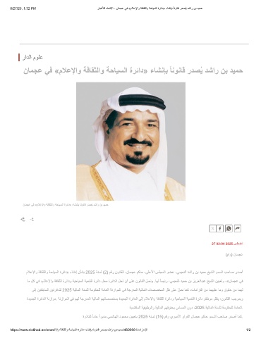 8/27/25, 1:32 PM رﺎﺑﺧﻸﻟ دﺎﺣﺗﻻا - نﺎﻣﺟﻋ ﻲﻓ «مﻼﻋﻹاو ﺔﻓﺎﻘﺛﻟاو ﺔﺣﺎﯾﺳﻟا ةرﺋاد» ءﺎﺷﻧﺈﺑ ً ﺎﻧوﻧﺎﻗ ردﺻُﯾ دﺷار نﺑ دﯾﻣﺣ