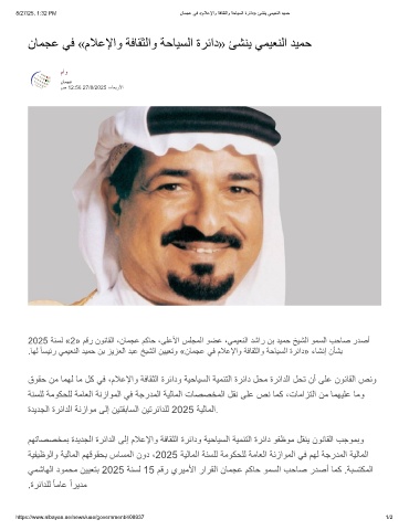 8/27/25, 1:32 PM نﺎﻣﺟﻋ ﻲﻓ «مﻼﻋﻹاو ﺔﻓﺎﻘﺛﻟاو ﺔﺣﺎﯾﺳﻟا ةرﺋاد» ﺊﺷﻧﯾ ﻲﻣﯾﻌﻧﻟا دﯾﻣﺣ