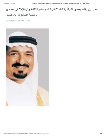 8/27/25, 1:25 PM نﺎﻣﺟﻋ ﻲﻓ "مﻼﻋﻹاو ﺔﻓﺎﻘﺛﻟاو ﺔﺣﺎﯾﺳﻟا ةرﺋاد" ءﺎﺷﻧﺈﺑ ً ﺎﻧوﻧﺎﻗ ردﺻﯾ دﺷار نﺑ دﯾﻣﺣ تارﺎﻣﻹا ءﺎﺑﻧأ ﺔﻟﺎﻛو | دﯾﻣﺣ نﺑ زﯾزﻌﻟادﺑﻋ ﺔﺳﺎﺋرﺑ
