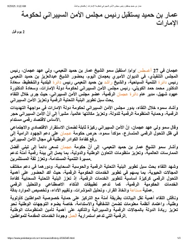 8/29/25, 9:22 AM ٹﻧﺋاوﺑ نﺎﺗﺳﮐﺎﺑ | تارﺎﻣﻹا ﺔﻣوﻛﺣﻟ ﻲﻧارﺑﯾﺳﻟا نﻣﻷا سﻠﺟﻣ سﯾﺋر لﺑﻘﺗﺳﯾ دﯾﻣﺣ نﺑ رﺎﻣﻋ