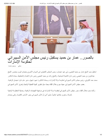8/29/25, 9:21 AM تارﺎﻣﻹا قرﺑ - تارﺎﻣﻹا ﺔﻣوﻛﺣﻟ ﻲﻧارﺑﯾﺳﻟا نﻣﻷا سﻠﺟﻣ سﯾﺋر لﺑﻘﺗﺳﯾ دﯾﻣﺣ نﺑ رﺎﻣﻋ ..روﺻﻟﺎﺑ