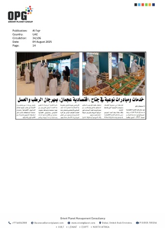 Publication: Al Fajr Country: UAE Circulation: 34,596 Date: 04 August 2025 Page: 14
