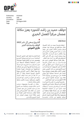 Publication: Al Etihad Country: UAE Circulation: 109,640 Date: 04 August 2025 Page: 8