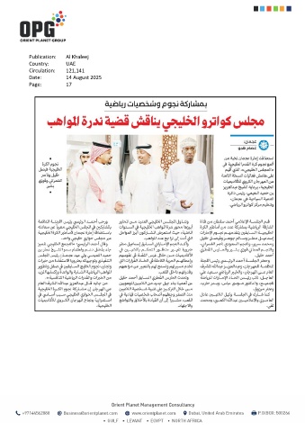 Publication: Al Khaleej Country: UAE Circulation: 121,141 Date: 14 August 2025 Page: 17