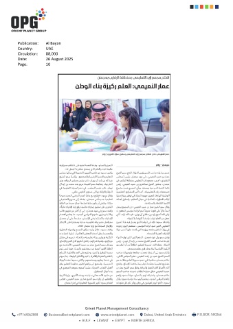 Publication: Al Bayan Country: UAE Circulation: 88,000 Date: 26 August 2025 Page: 10