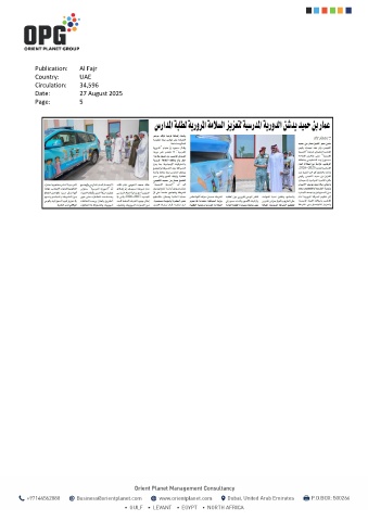 Publication: Al Fajr Country: UAE Circulation: 34,596 Date: 27 August 2025 Page: 5