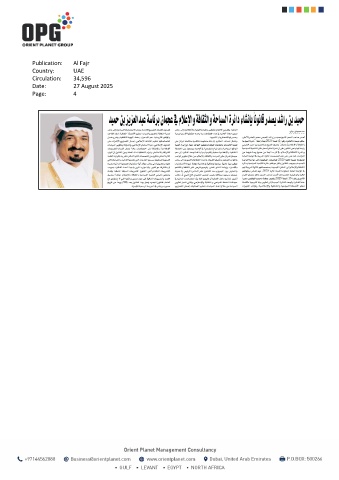 Publication: Al Fajr Country: UAE Circulation: 34,596 Date: 27 August 2025 Page: 4