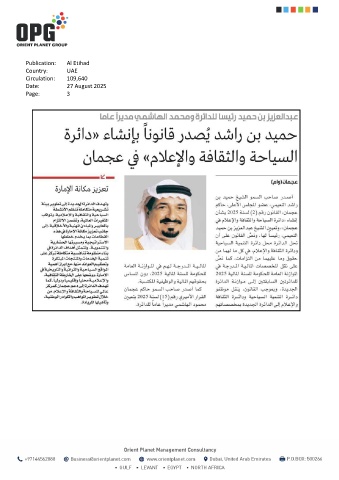 Publication: Al Etihad Country: UAE Circulation: 109,640 Date: 27 August 2025 Page: 3